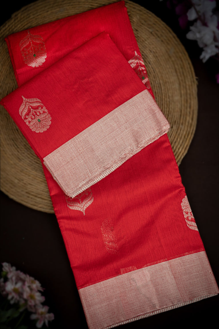 Mandir Red & Royal Blue Venkatagiri Buttis Saree