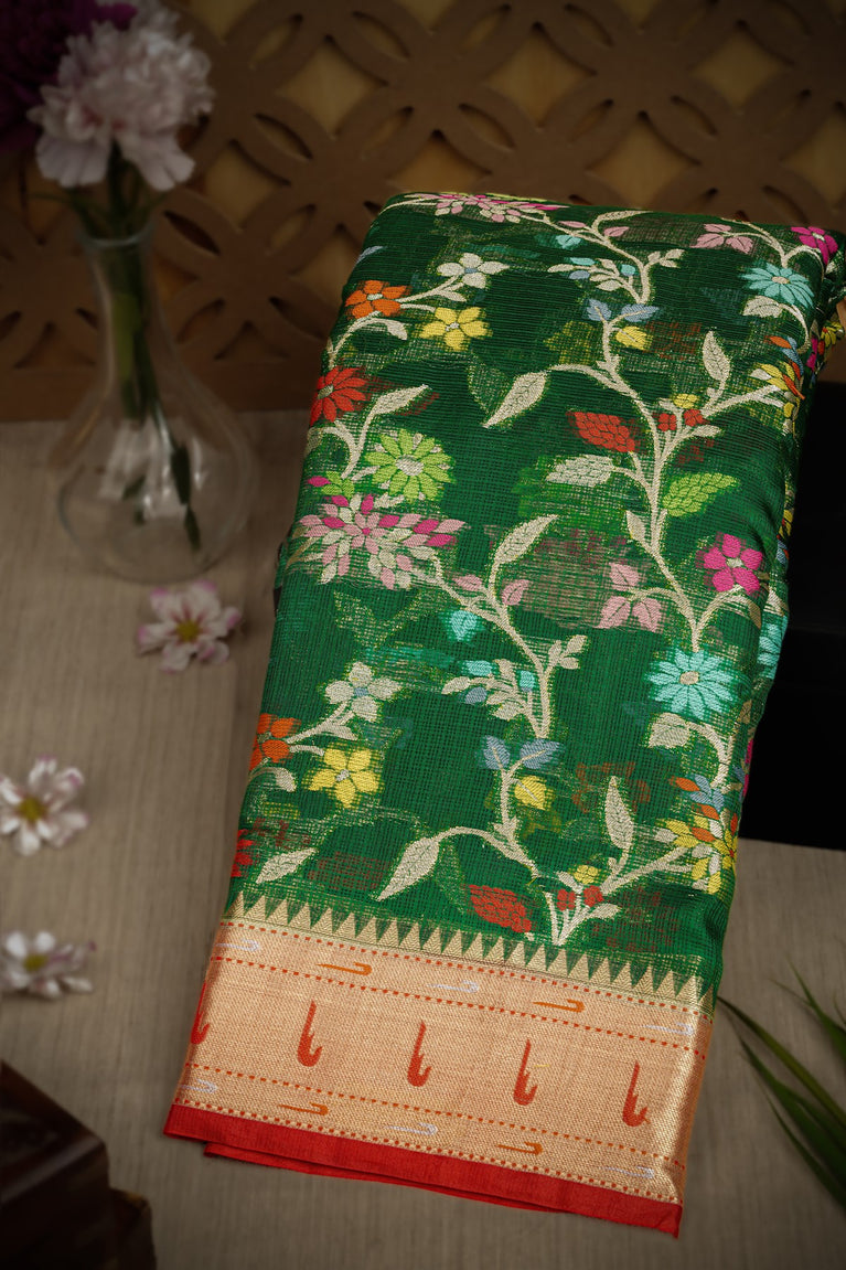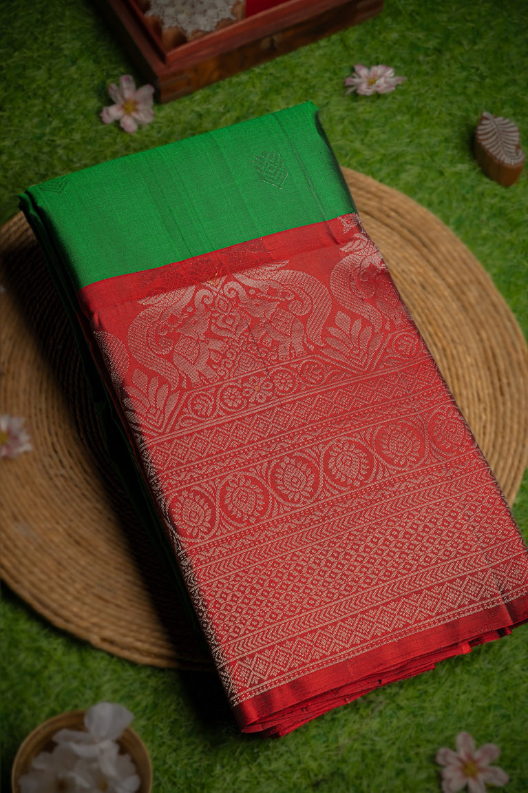 Varamahalakshmi Green & Red Fancy Buttis Saree