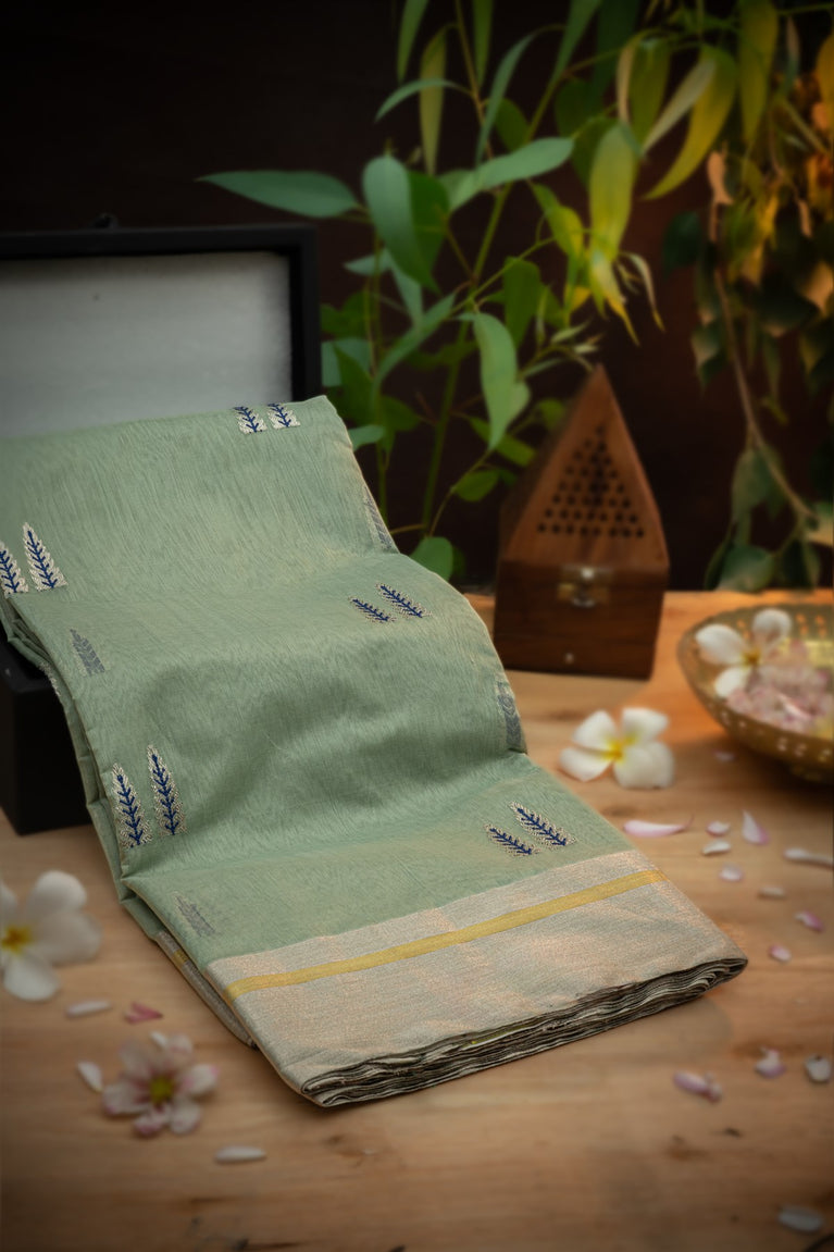 Varamahalakshmi Pista Green & Silver Chanderi Motifs Saree