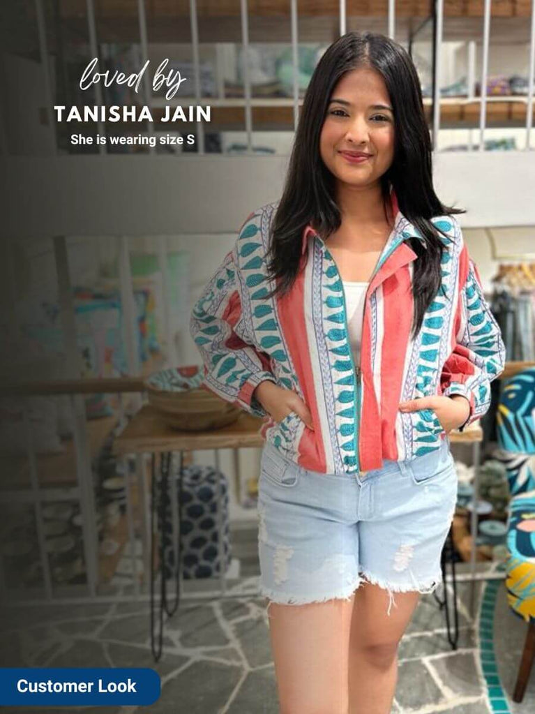 Julie Kantha Embroidered Block Printed Bomber Jacket