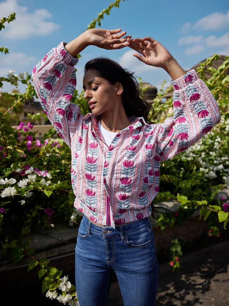 Jane Kantha Embroidered Block Printed Bomber Jacket