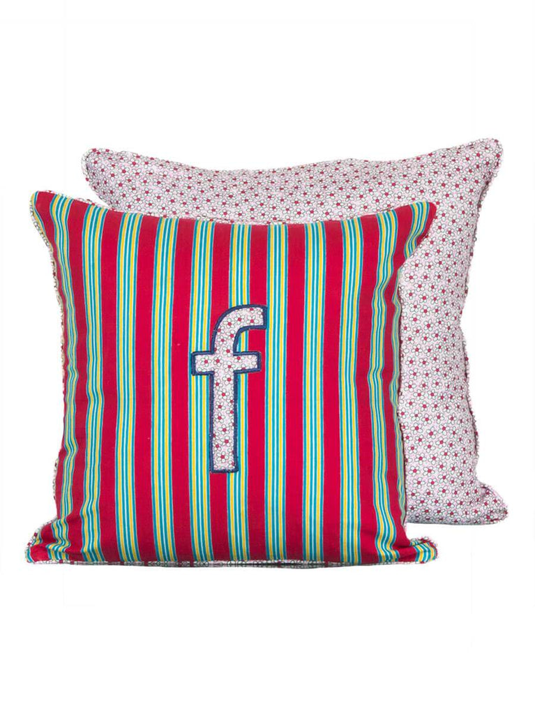 Letter F Cotton Cushion Cover - 12 Inch