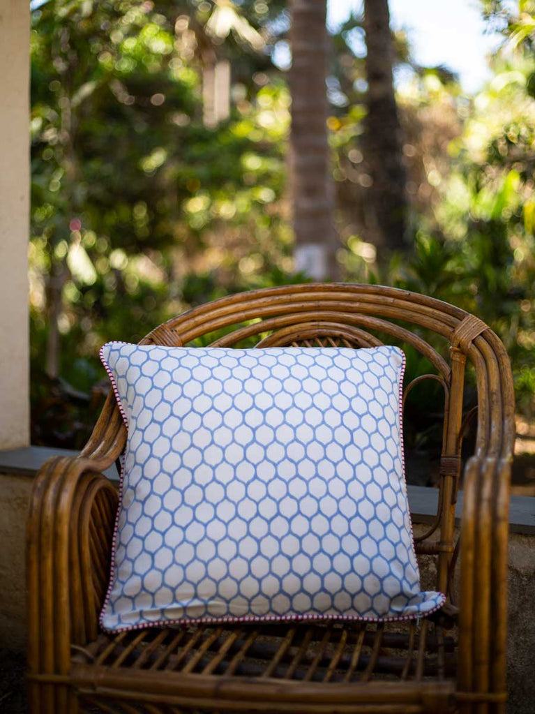 Lavender Bloom Block Printed Cotton Cushion Cover - 20 Inch
