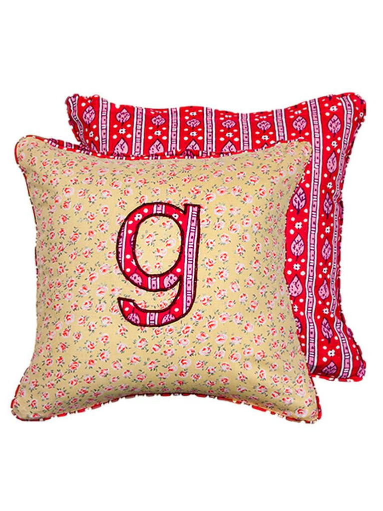 Letter G Cotton Cushion Cover - 12 Inch