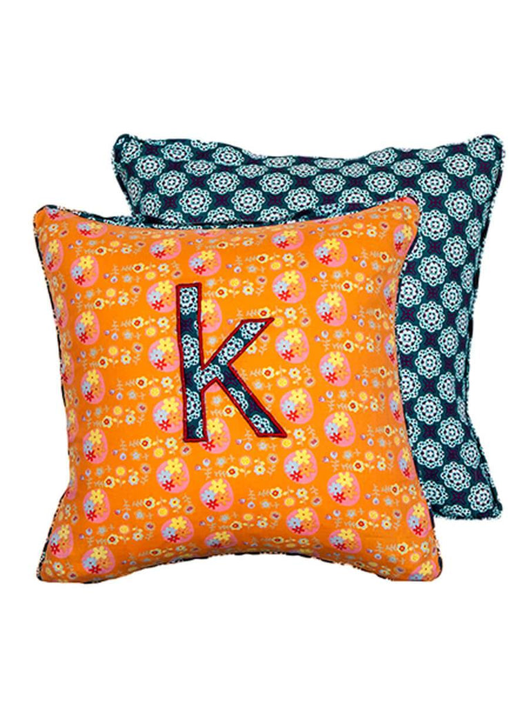 Letter K Cotton Alphabet Cushion Cover - 12 Inch