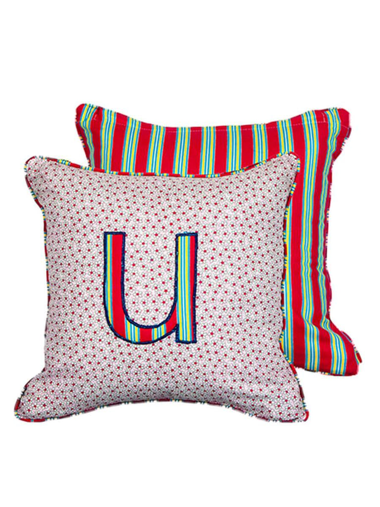 Letter U Cotton Cushion Cover - 12 Inch