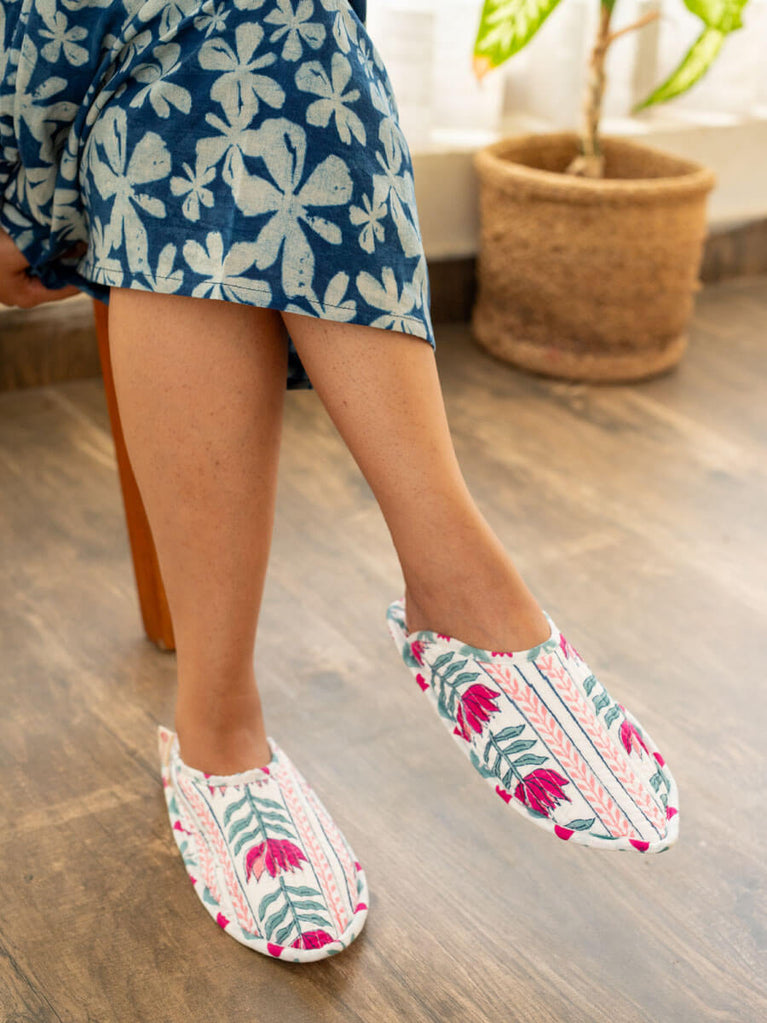 Lotus Meadow Slub Hand Block Print Palazzo Pants