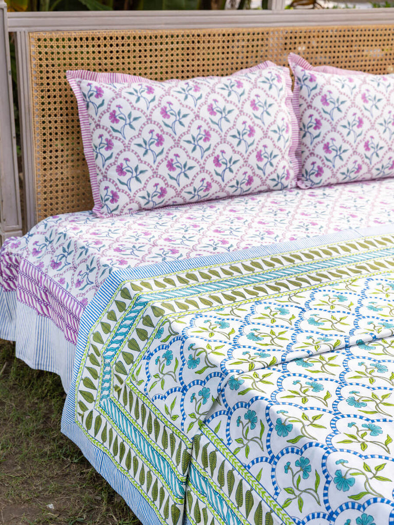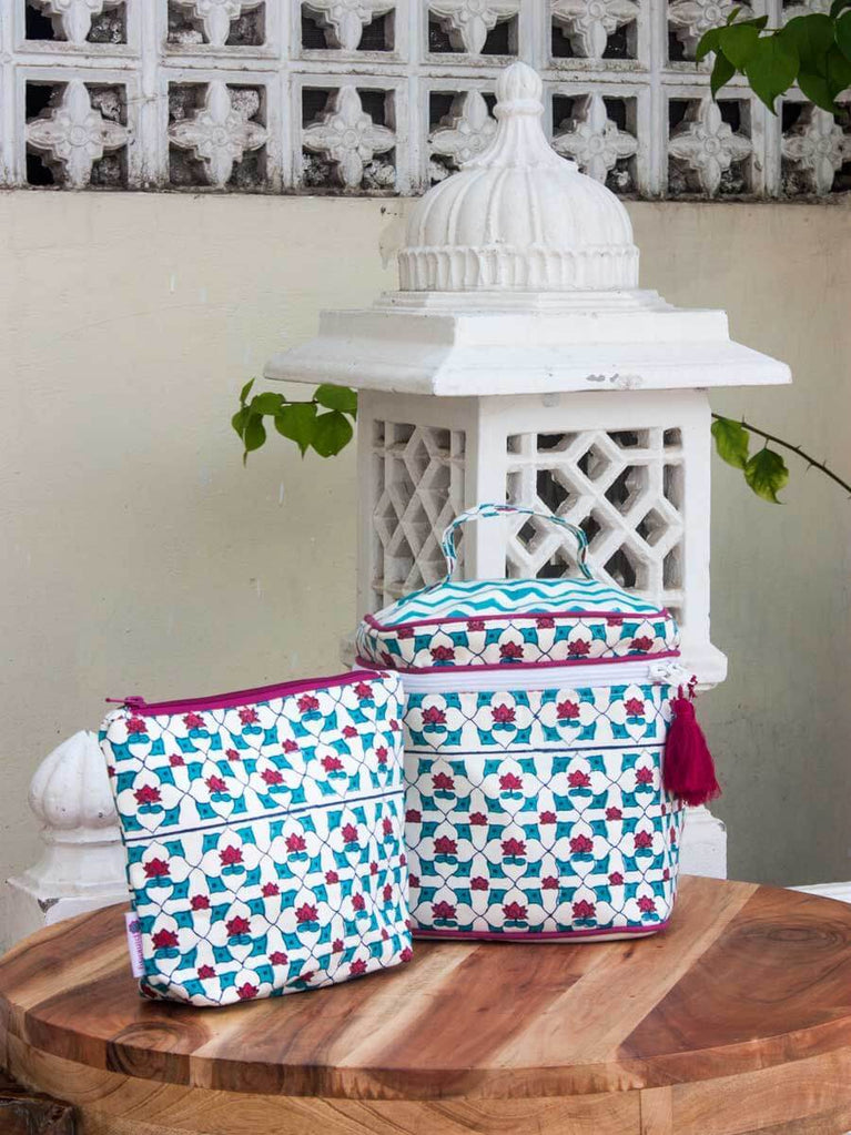 Lotus Love Block Printed Cotton Travel Vanity Case