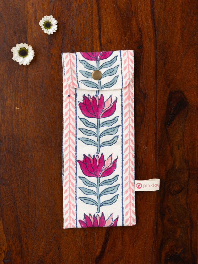 Lotus Love Block Printed Toothbrush Travel Pouch