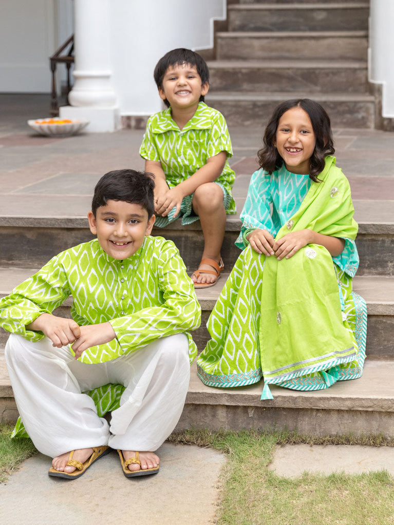 Set of 3 - Sunshine Love Block Printed Kurta With Jacket