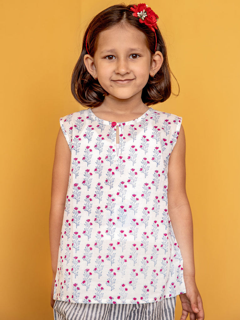 Spring Bloom Sleeveless Block Printed Cotton Dress