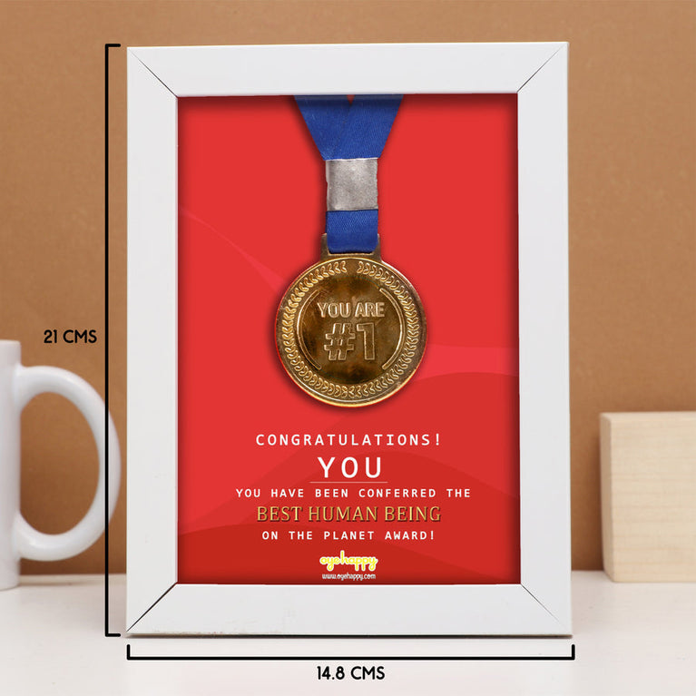 Specifications: Size of the Frame - 12.5 x 17.5 cm Material of the Frame - Wood Size of the Medal - 5.5 cm