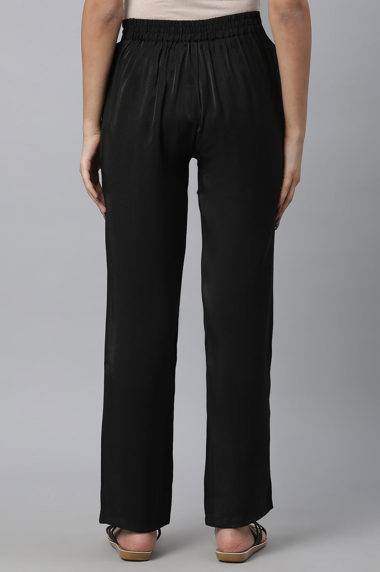 Black Solid Straight Fit Tencel Palazzo With Elasticated Waist