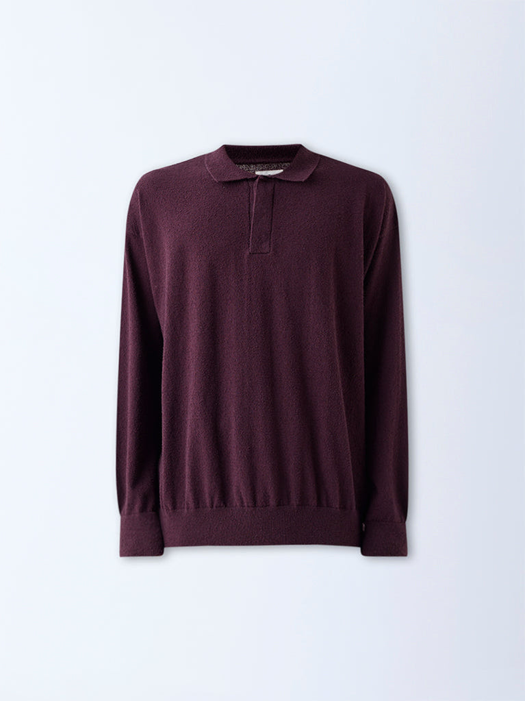 ETA Wine Knit Textured Relaxed-Fit Cotton-Blend Polo Sweater