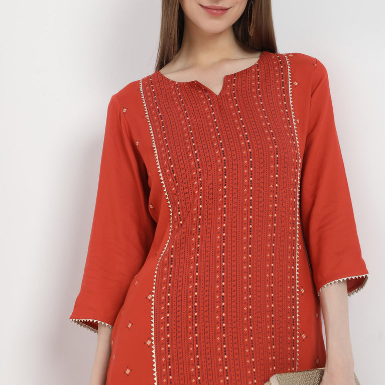 Viscose and modal are bio-based fibres derived from plants. They are extracted from a compound called cellulose, which lends stiffness and support to plants. This cellulose is realigned to create a fabric that is soft, durable and breathable. When both the fibres are combined, modal imparts lightness and a rich feel to the fabric. Both the fibres are responsibly sourced and have a low carbon footprint.