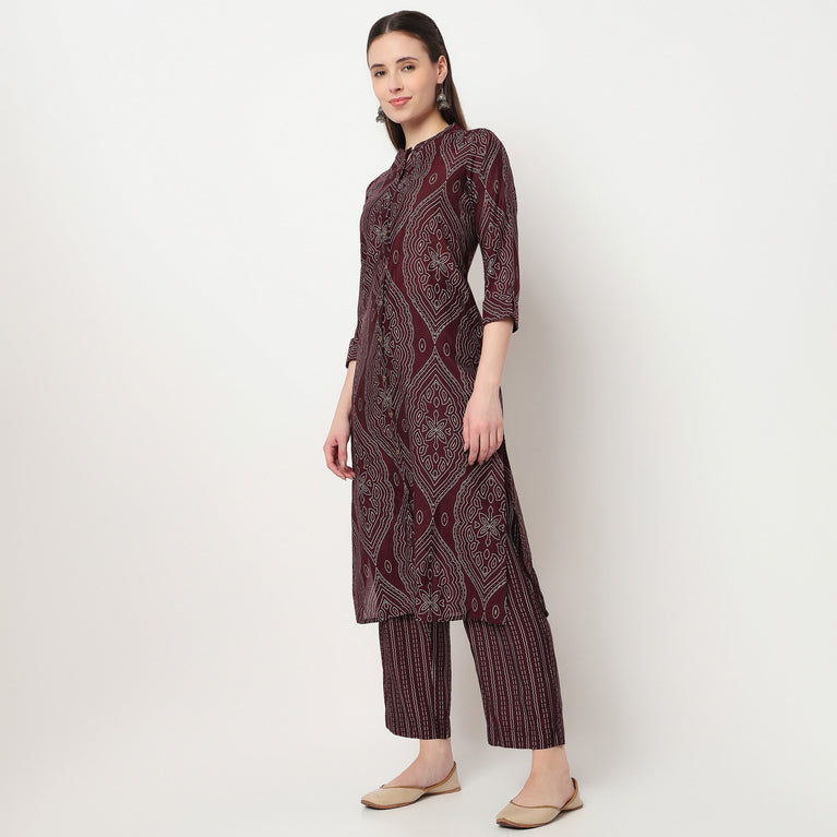 Flaunting A Striking Quirky Print, This A-Line Cotton Silk Kurta From Neeru's Boasts A Luxurious Design That Is Sure To Turn Heads. It Features A Distinctive Shirt Collar, And A Front Slit For An Added Touch Of Style And Femininity. Perfectly Finished With A Flared Hemline, This Sophisticated Piece Will Make A Chic Addition To Any Daily Ensemble.