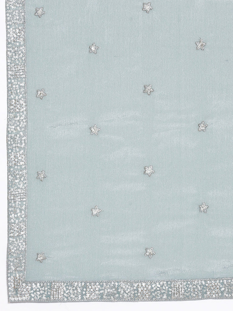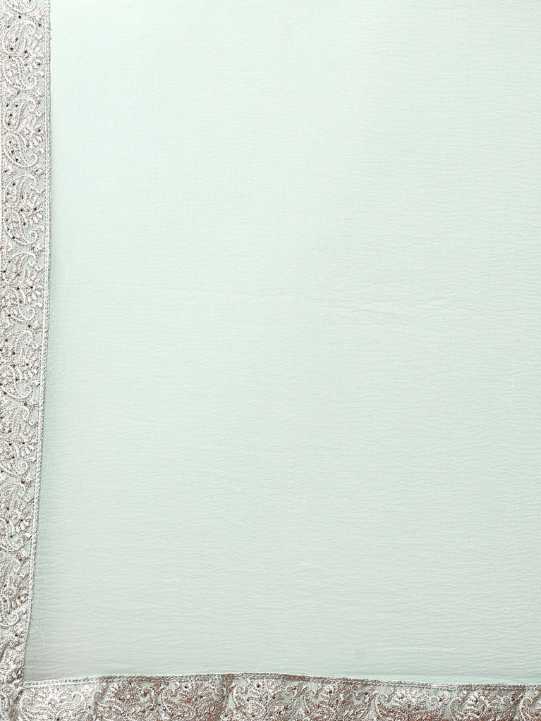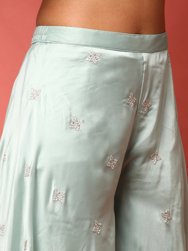 Aqua Modal Silk Embroidery Three Piece Suit Set