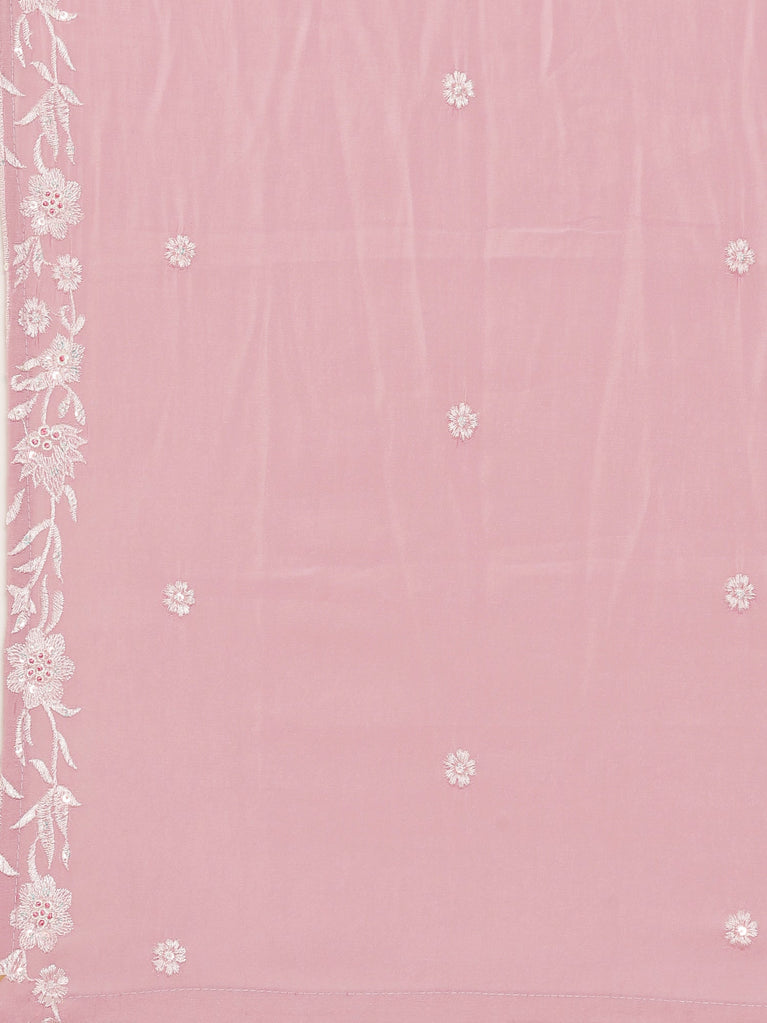 Baby Pink Modal Silk Embroidery Three Piece Suit Set