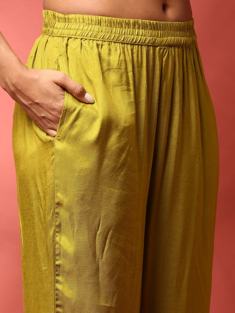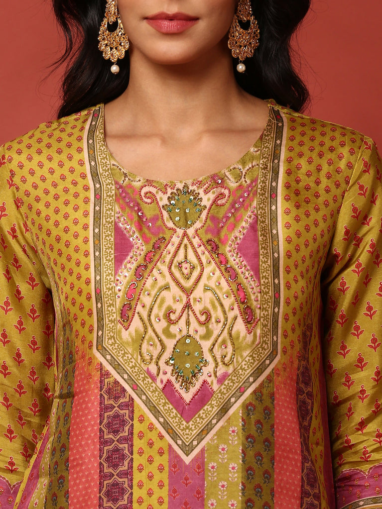 Elevate your ethnic wardrobe with this stunning Mustard Green Digital Print Suit Set. Featuring vibrant digital prints that showcase contemporary design sensibilities, this three-piece ensemble combines traditional silhouettes with modern aesthetics. The rich mustard green hue complements all skin tones, making it a versatile choice for festive occasions, celebrations, and special events. Crafted for comfort and style, this suit set offers the perfect balance of elegance and wearability. Whether you're attending a wedding, festival, or formal gathering, this piece ensures you stand out with refined sophistication and cultural grace.