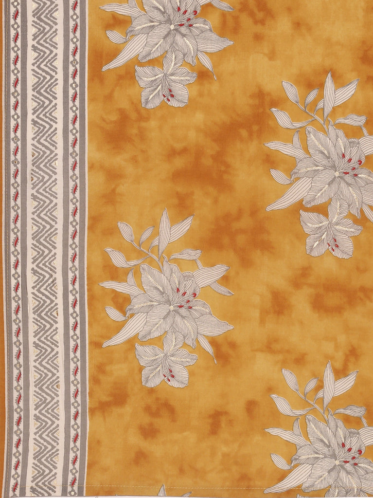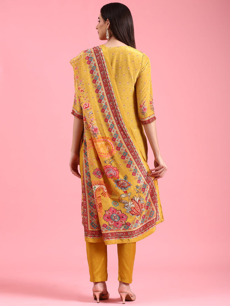 Mustard Dola Silk Floral Digital Print Three Piece Set