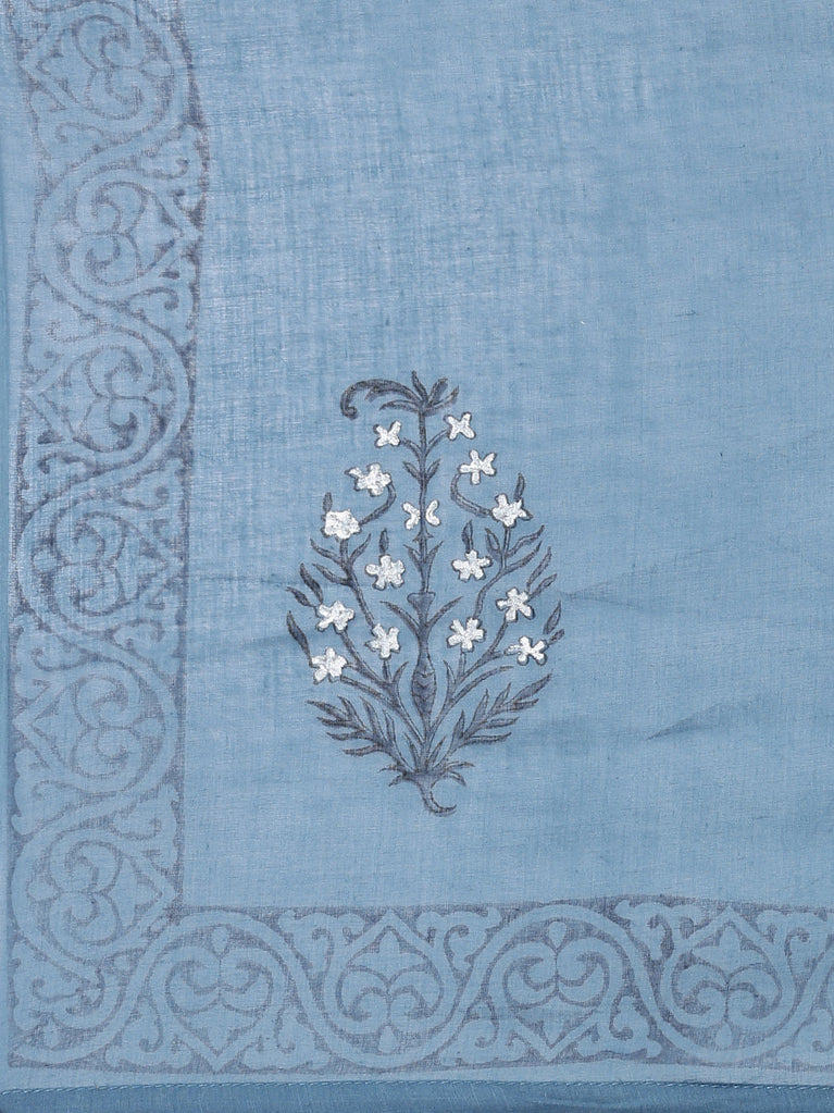 Ice Blue Banarasi Hand Embroidery Three Piece Set