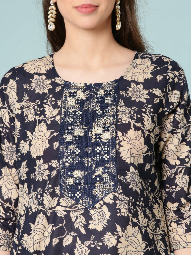 Elevate your ethnic wardrobe with this Indigo Cotton Printed Anarkali Three Piece Set. Crafted from breathable cotton, it offers comfort alongside elegance, featuring intricate prints that enhance its timeless appeal. This ensemble includes a flowing Anarkali kurta, matching bottoms, and a coordinating dupatta, perfect for festive occasions or refined gatherings. The lightweight fabric ensures ease of movement while maintaining a graceful silhouette, making it a sophisticated choice for cultural celebrations.