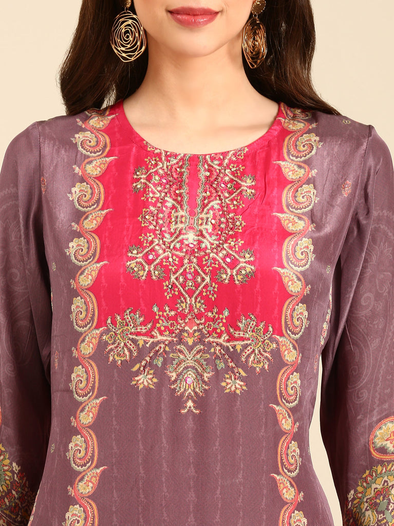 Lavender Modal Silk Floral Digital Print Three Piece Set