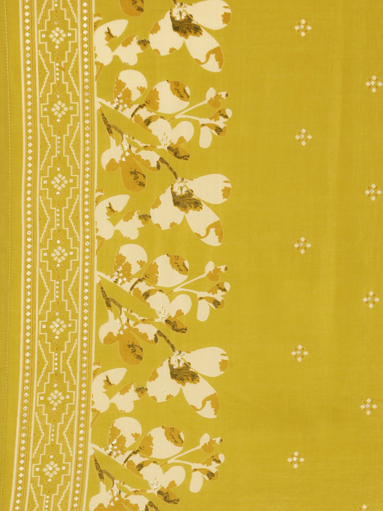 Lime Green Dola Silk Floral Printed Three Piece Set