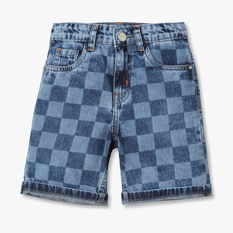Boys Checkered Mid Rise Shorts