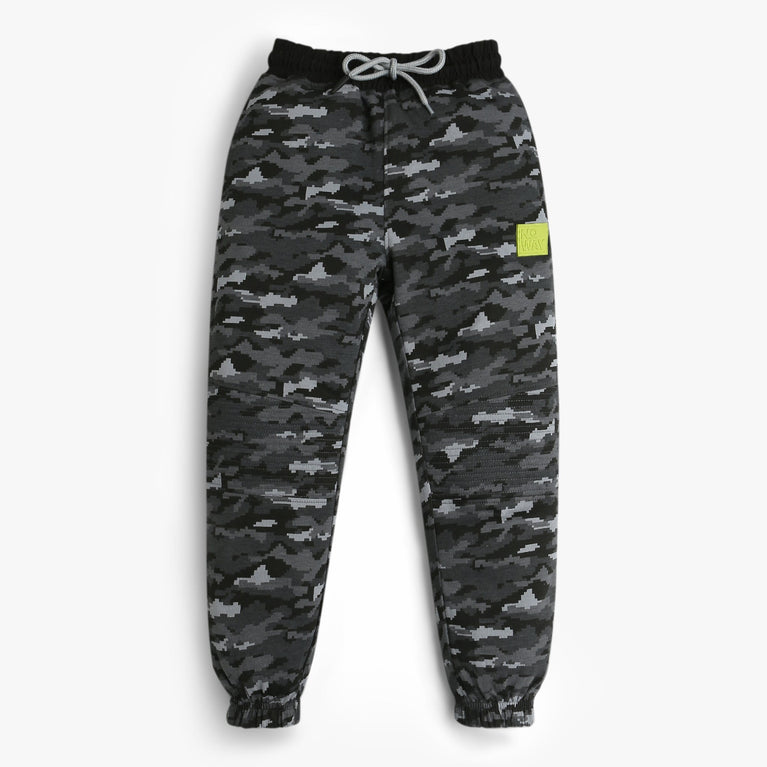 Boys Cut And Sew Full Length Fashion Jogger With All Over Print Side Panel Joggers
