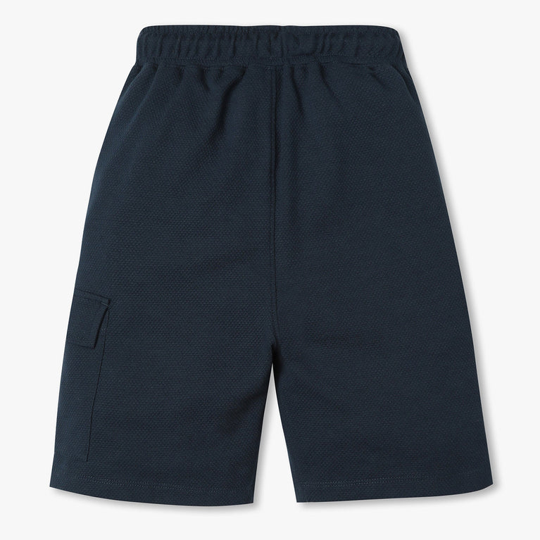 These cut and sew pattern regular fit shorts has mid rise waist. Made from cotton cotton, your kid's feel comfortable wearing the product.