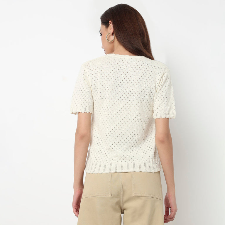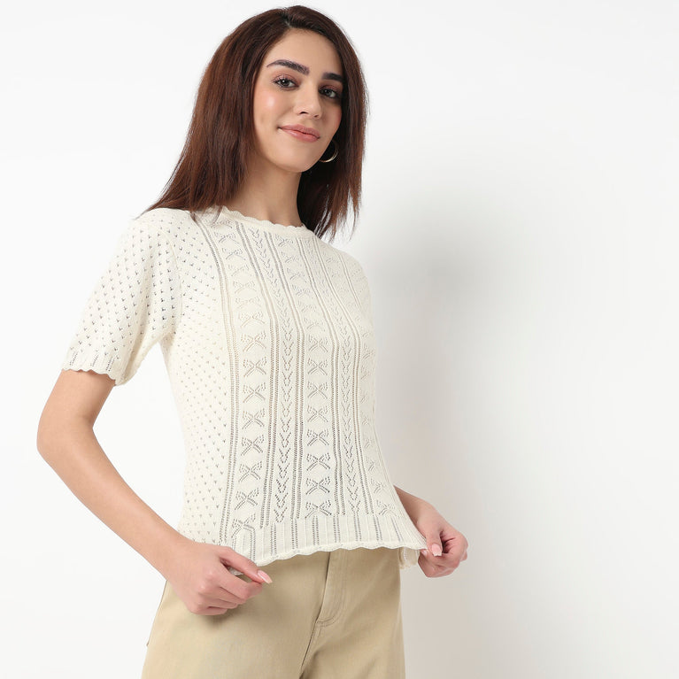 Cotton Full Sleeve Flatknit Top