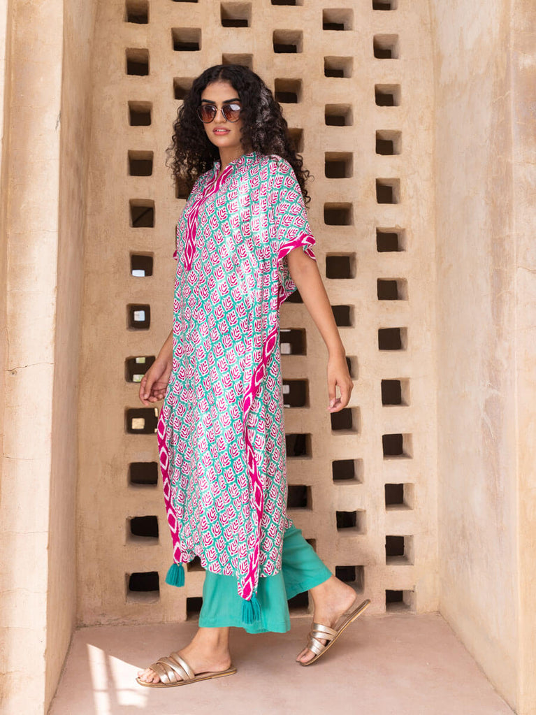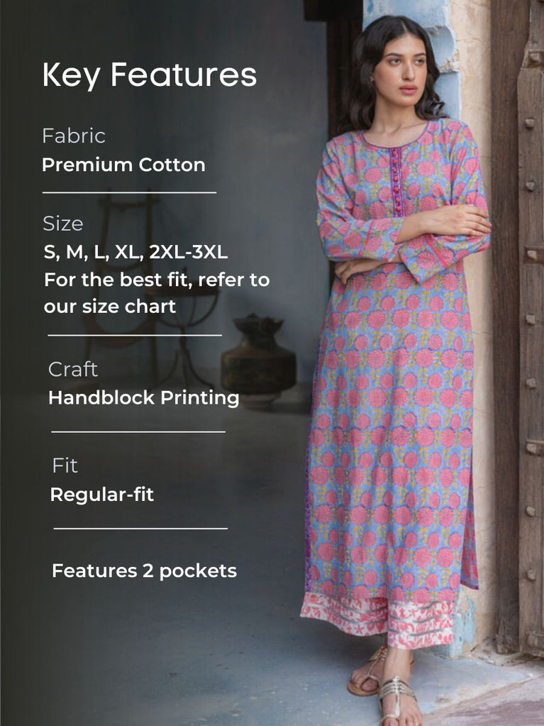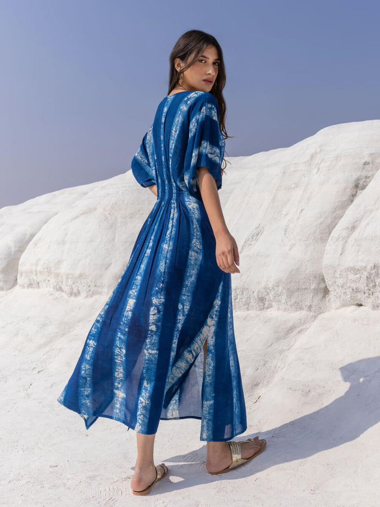 Jheel Indigo Printed Modal Kaftan Maxi Dress