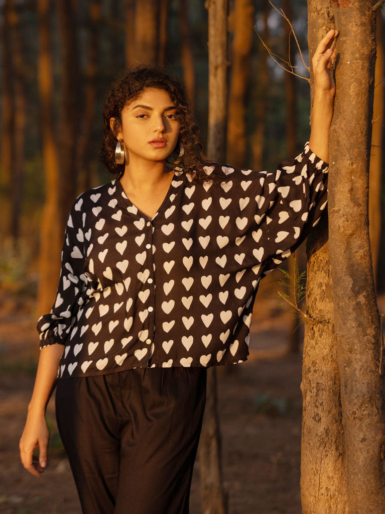 Maori Black Modal Kaftan Top - Comfort Fit