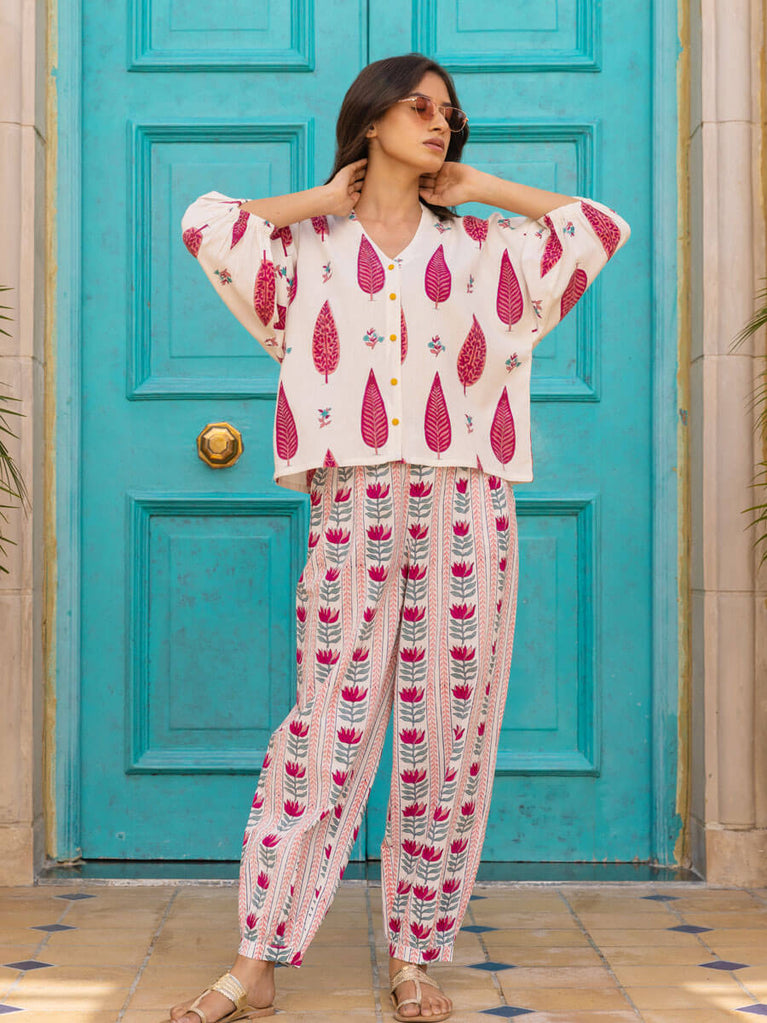 Margarita Hand Block Printed Kaftan Top - Comfort Fit