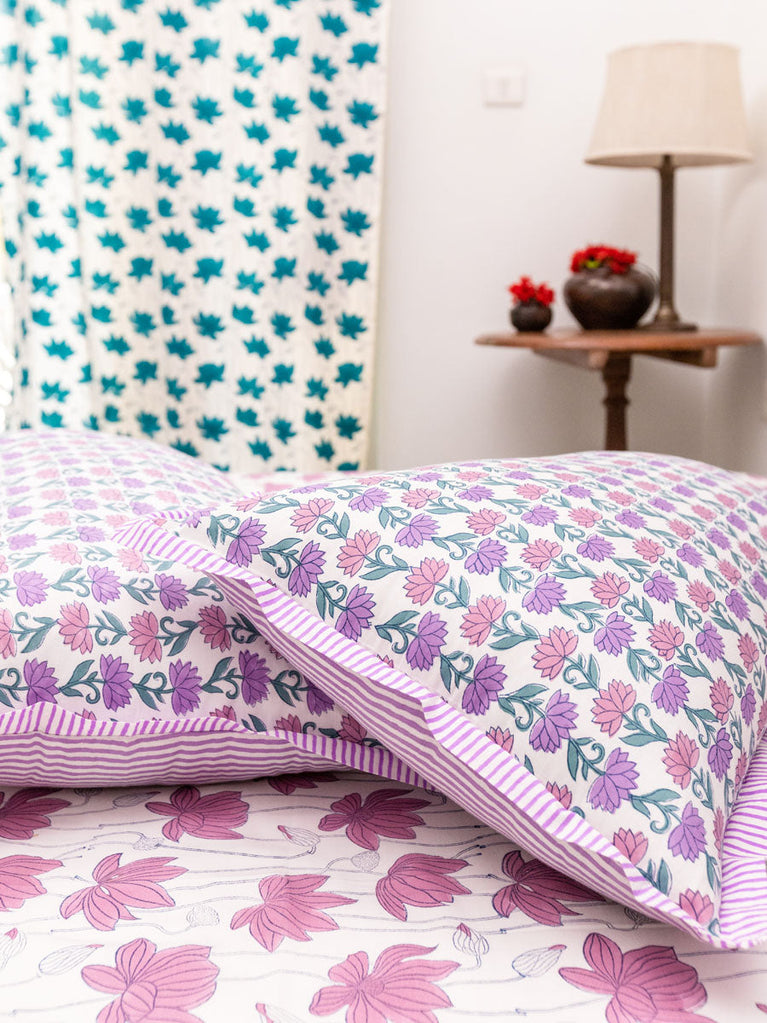 Purple Lotus Hand Block Printed Cotton Bed Sheet