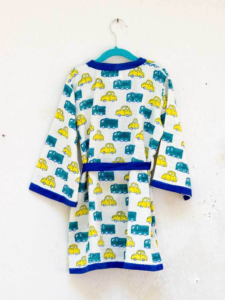 Power Wheels Block Printed Waffle Cotton Bath Robe