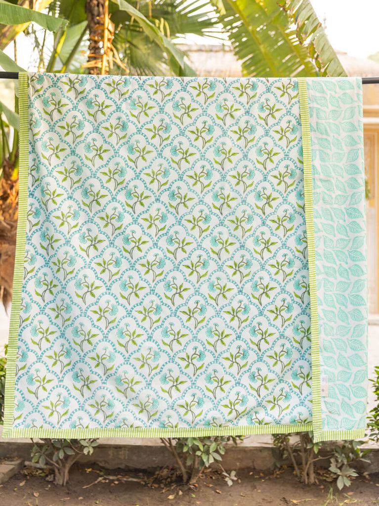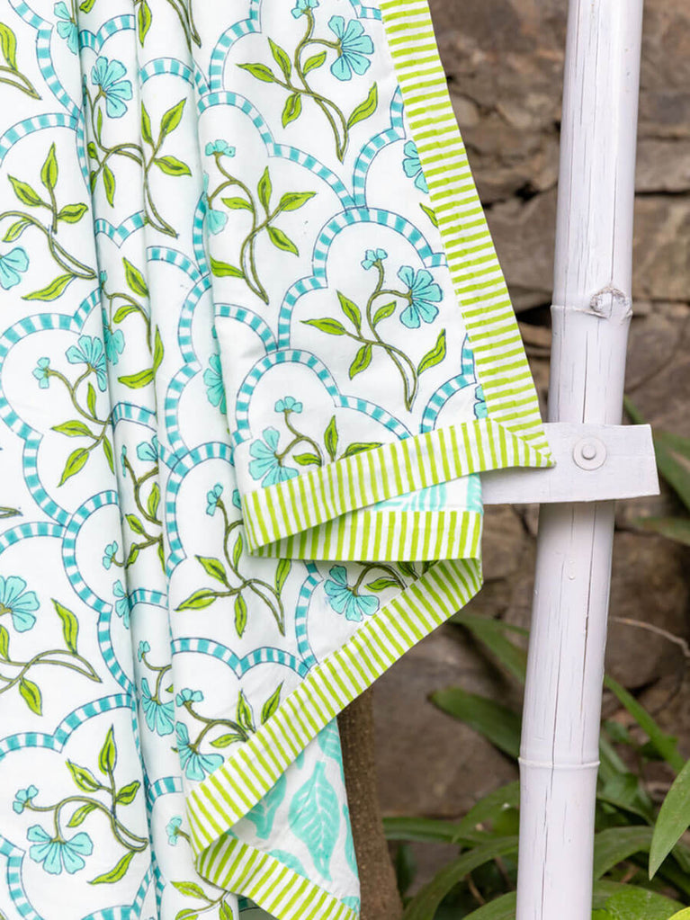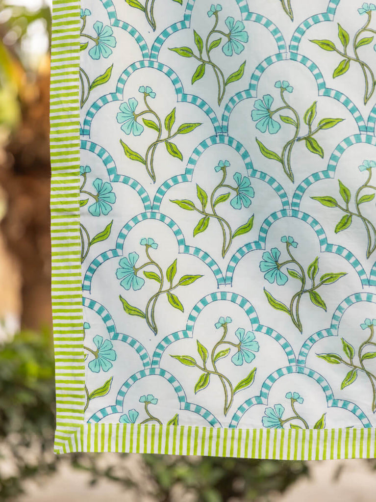 Turquoise Stripes Block Printed Cotton Top & Pyjama Set