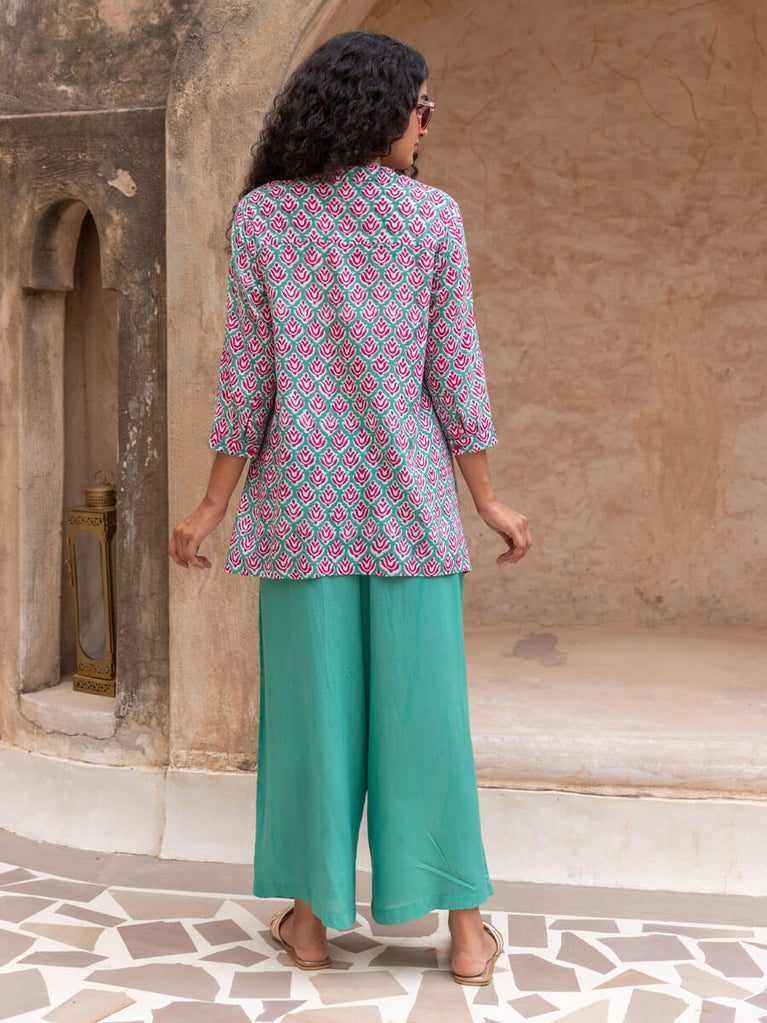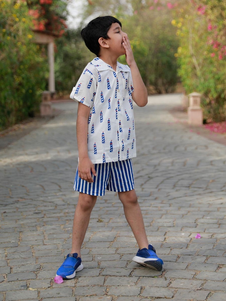 Blue Lighthouse Organic Cotton Block Printed Shirt
