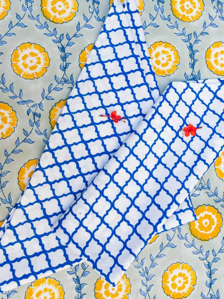 Blue Chevron Block Printed Cotton Table Napkins