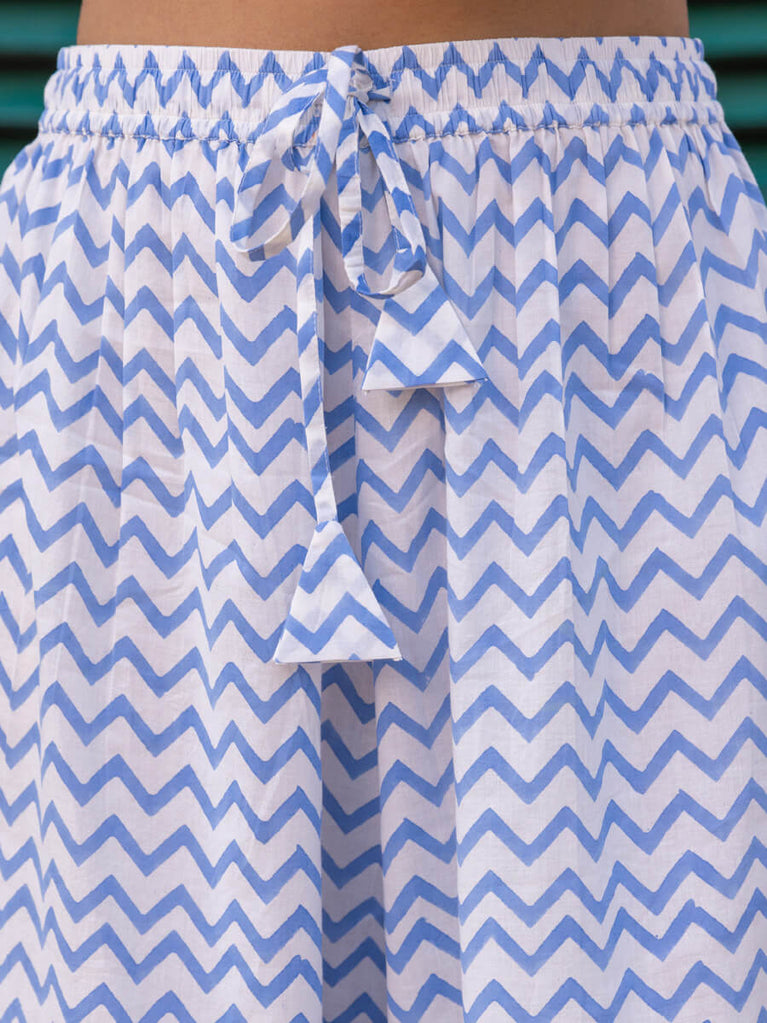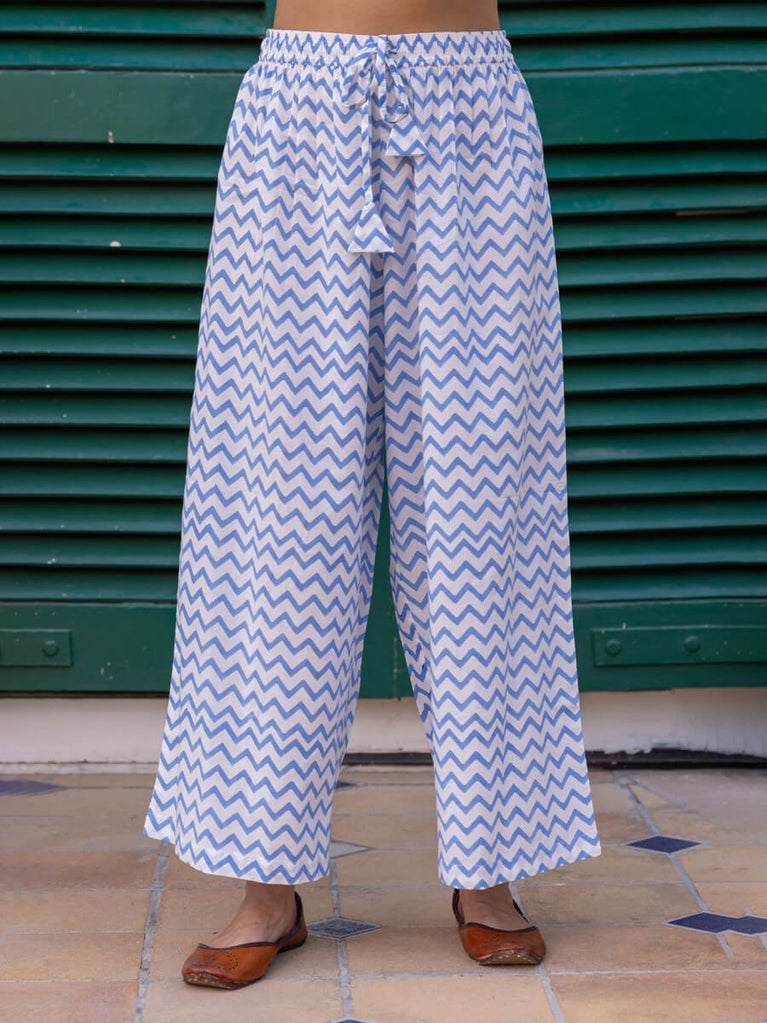 Blue Chevron Block Printed Cotton Palazzo