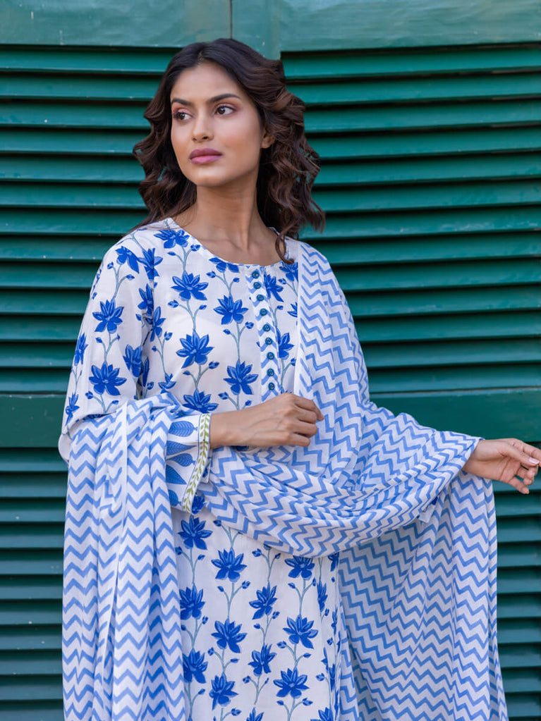 Chanchal Mitthu Organic Cotton Printed Angrakha Set