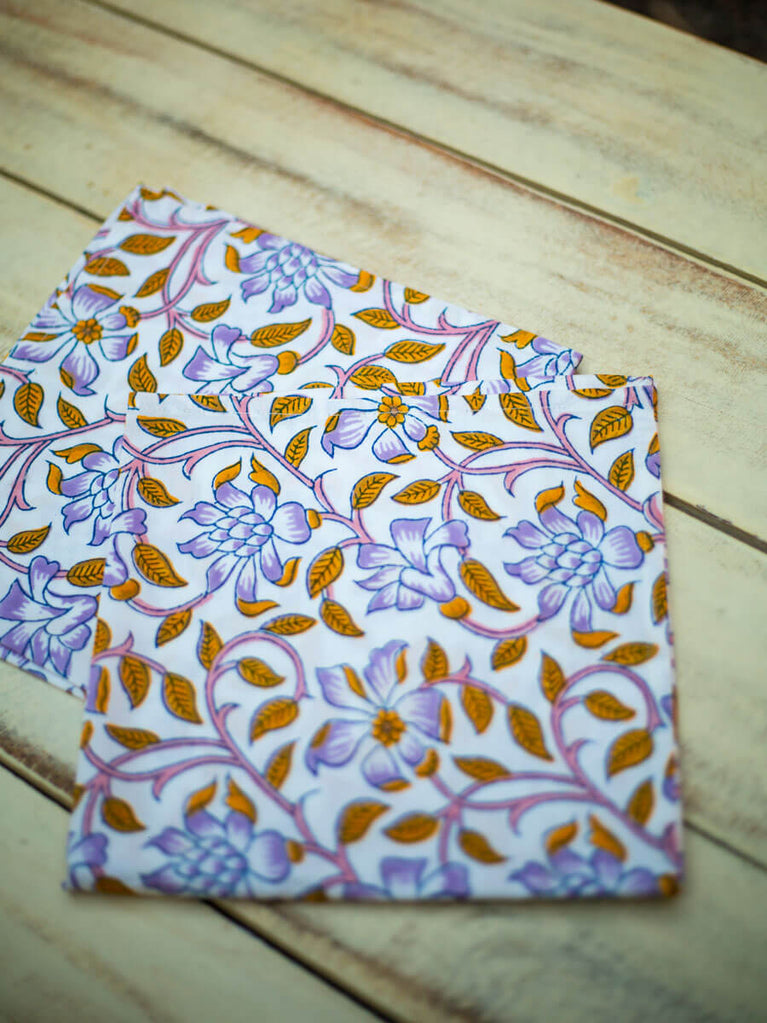 Fields of Sunflower Block Printed Cotton Table Napkins