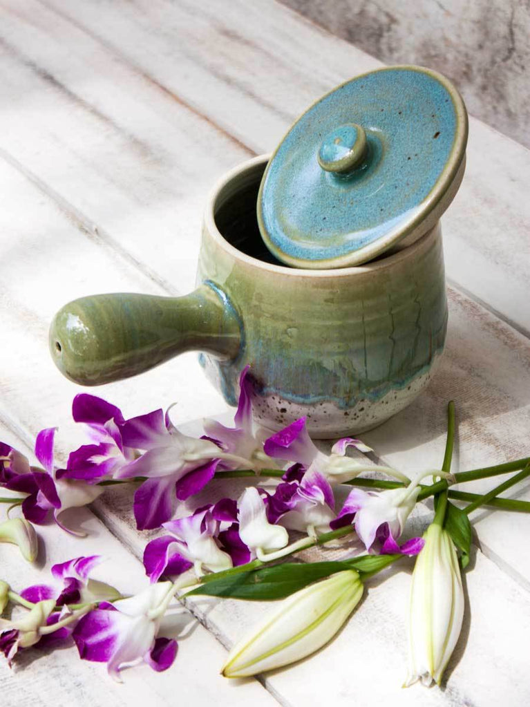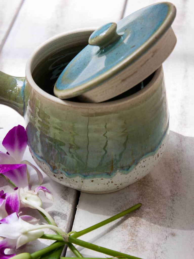 Emerald Hand-Thrown Dimpled Ceramic Tea Pot Set