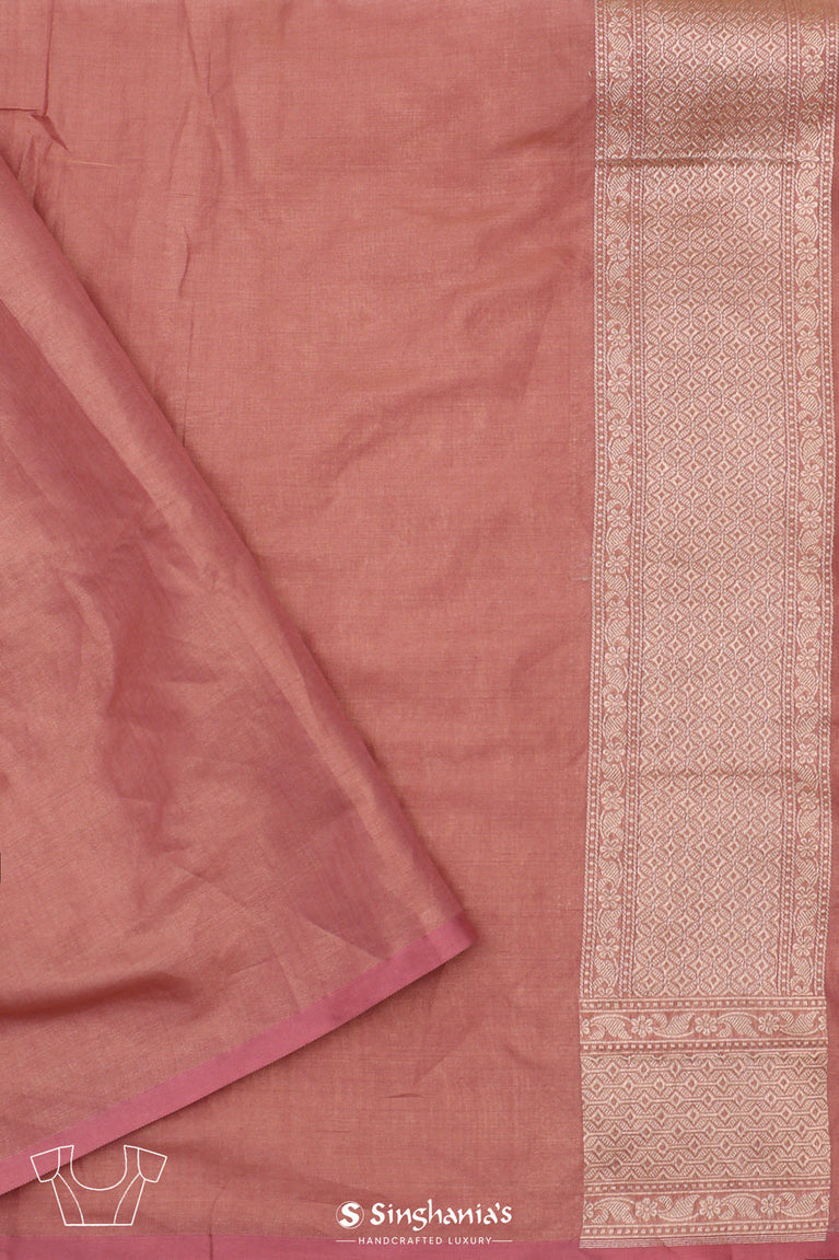A serene dusty pink banarasi silk saree featuring intricate floral jaal patterns in gold and silver zari weaving. The elaborate border and rich pallu design make it suitable for wedding functions and festival wear.