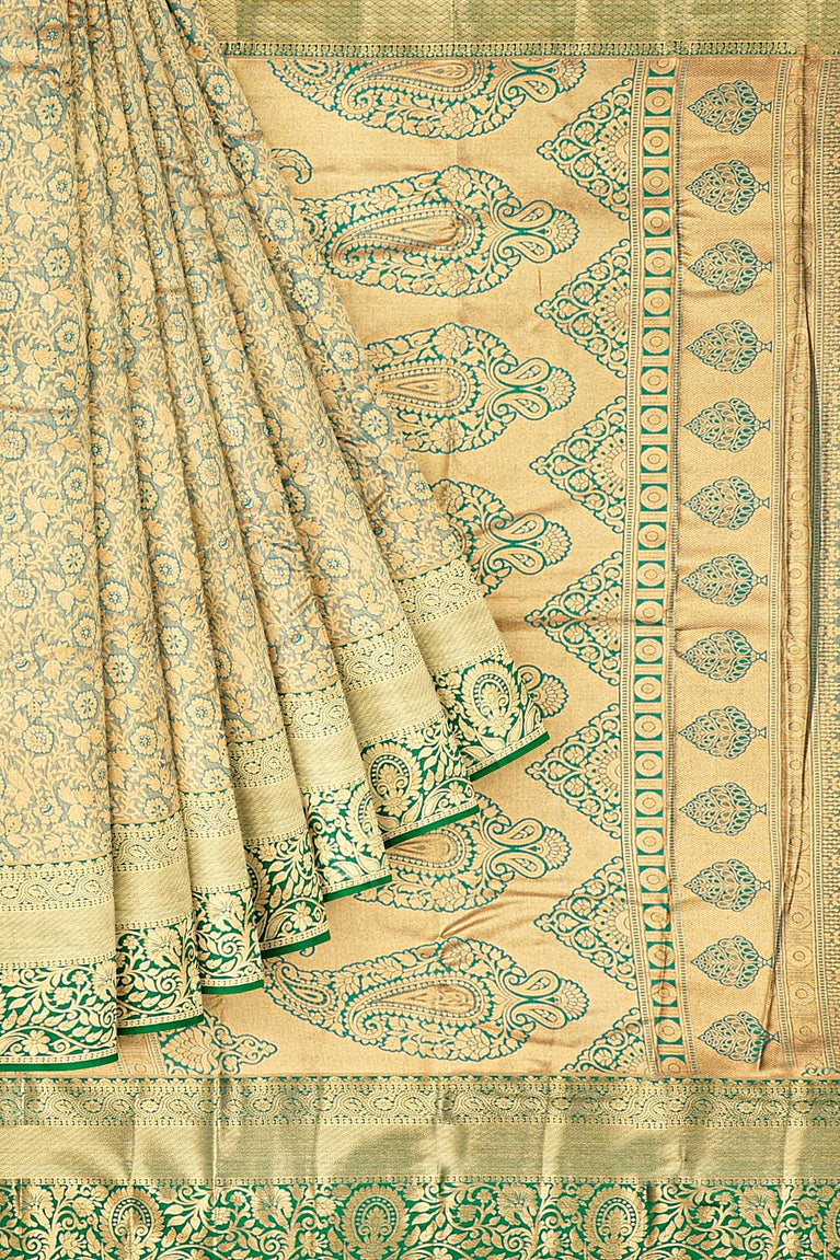 Dull Gold Kanjivaram Silk Saree With Contrast Border