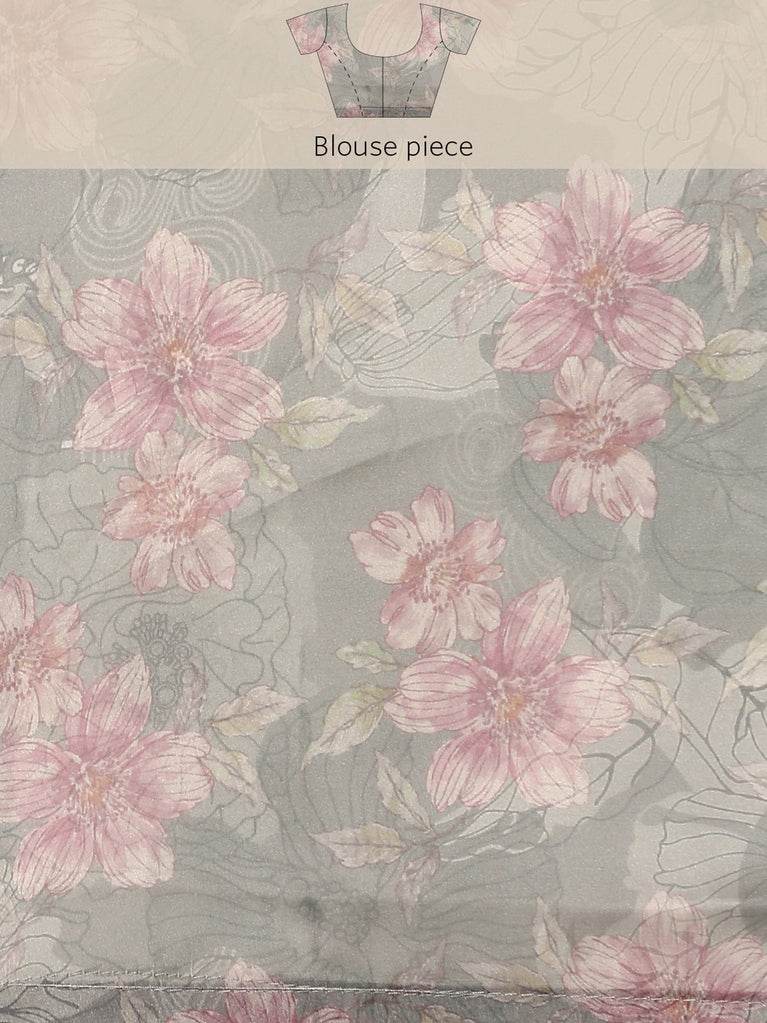 The saree is accompanied by a stylish, ready-made blouse designed to complete your look.