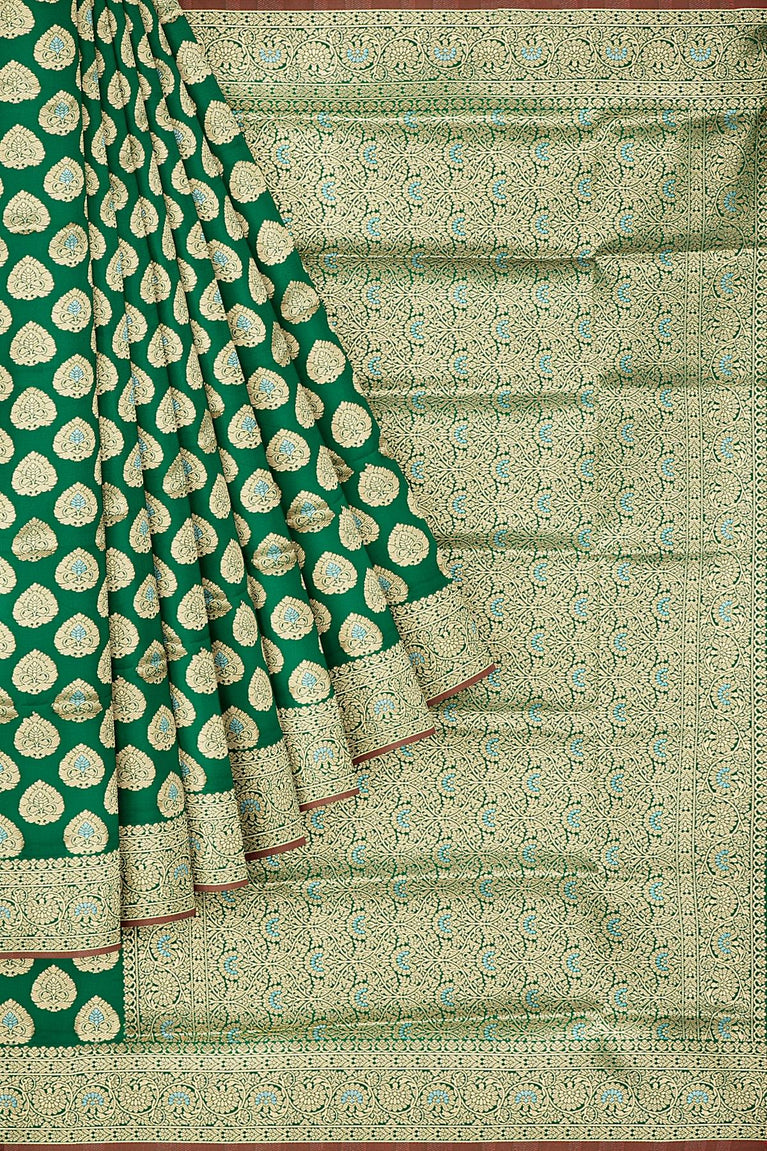 GREEN and GOLD BUTTIS SILK BLEND Saree with SEMI PATTU