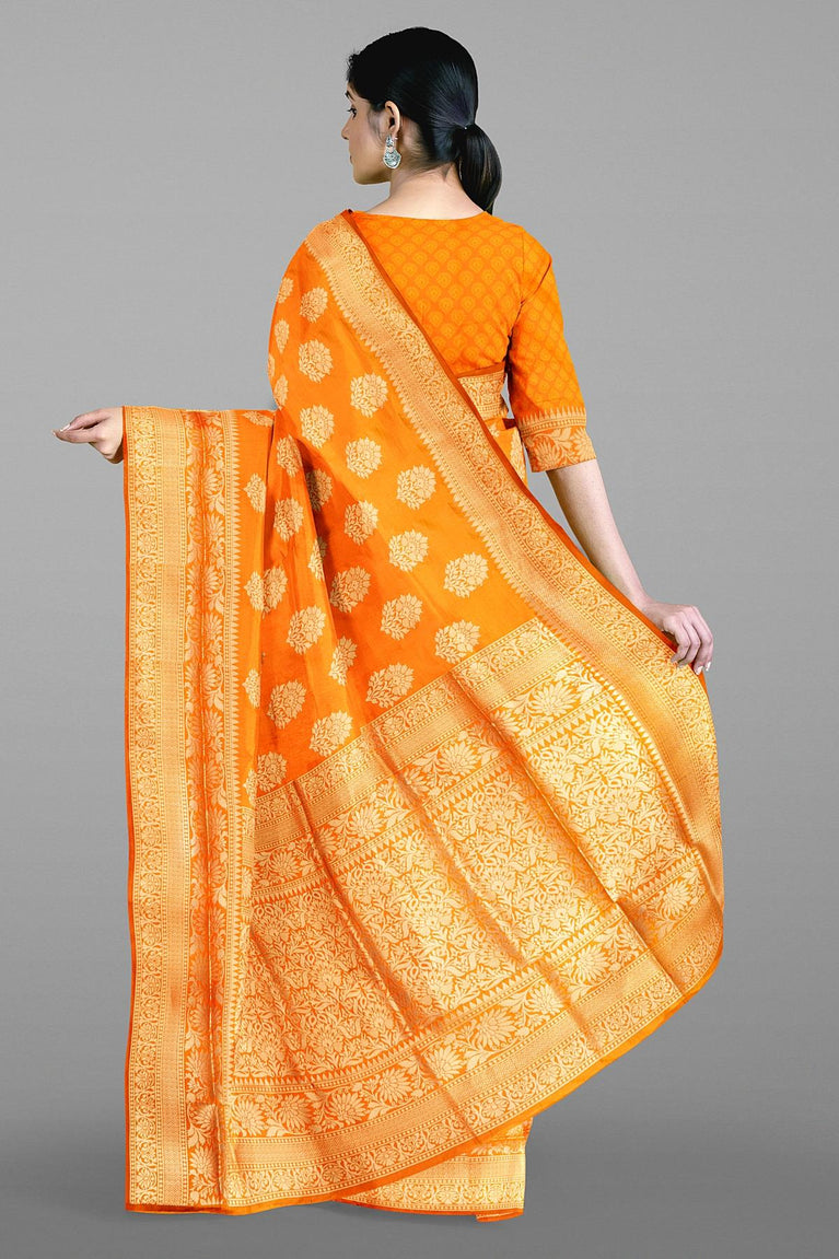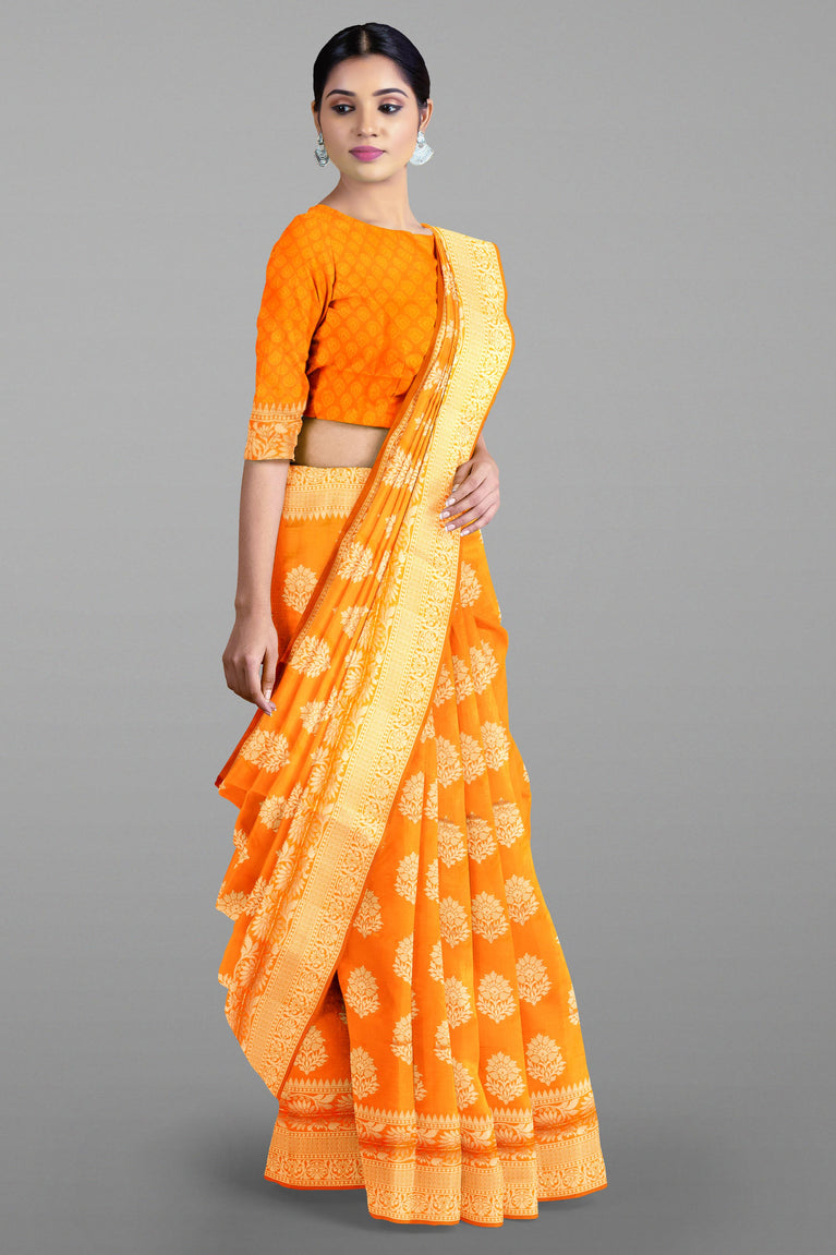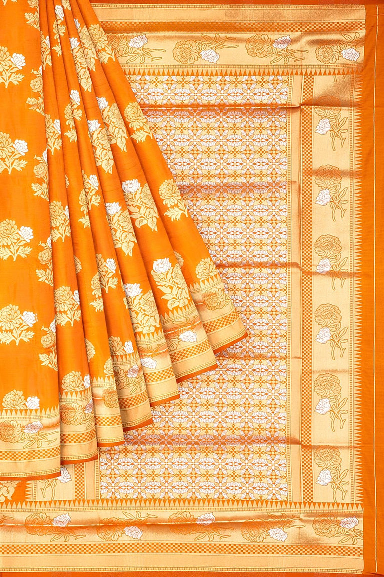 LIGHT ORANGE and GOLD FLORALS SILK BLEND Saree with SEMI PATTU