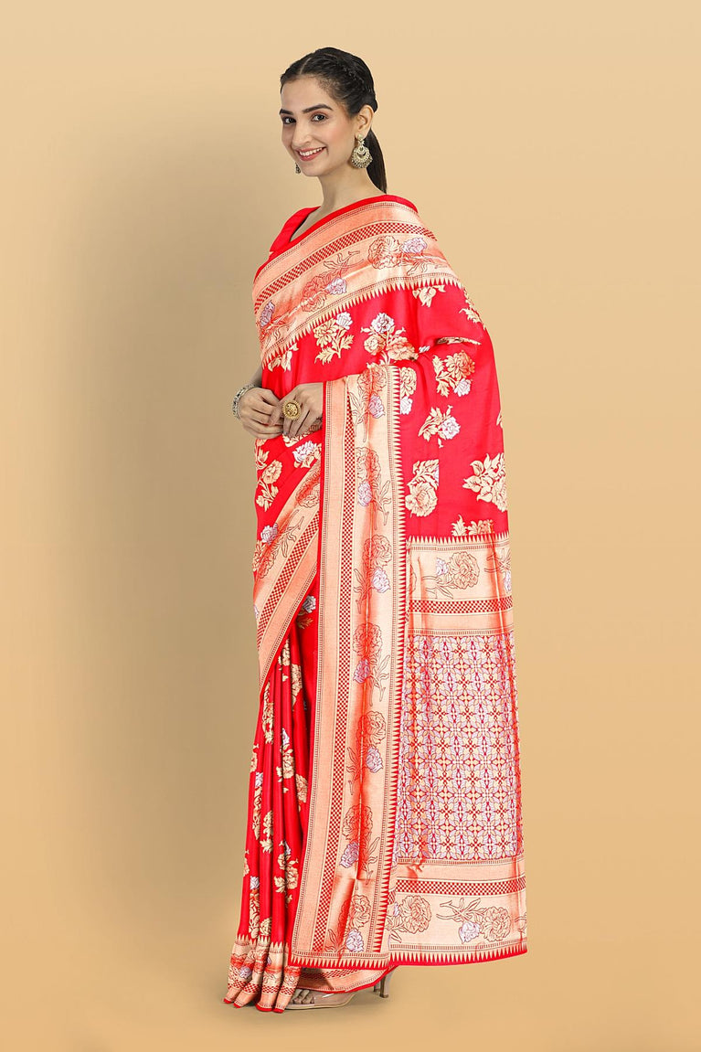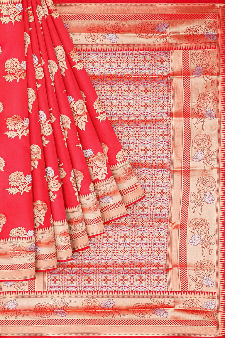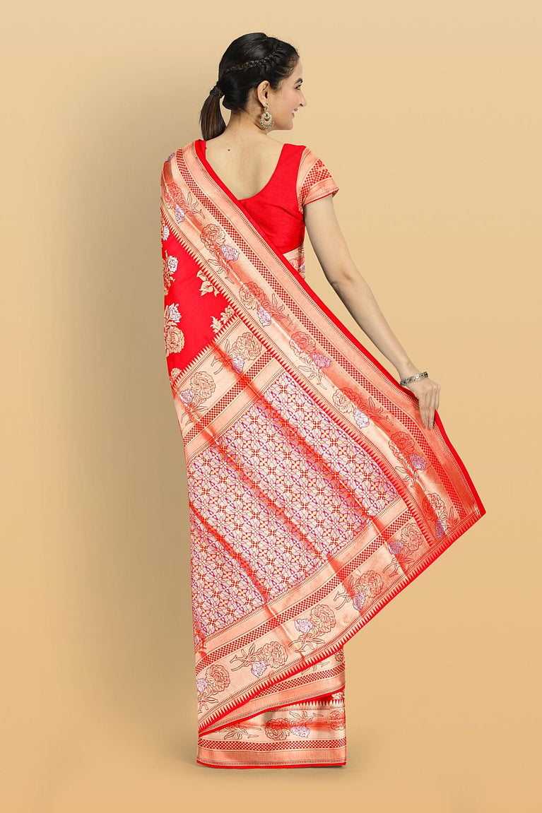 LIGHT PINK and RED CHECKS AND BUTTIS SILK Saree with BANARASI